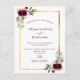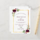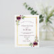 On front: A white background with a faux gold frame. Decorated with dark burgundy flowers, roses, boho style feathers and greenery. Personalize and add Your names and wedding details.