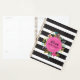 Parfait pour la maison, l'école ou le travail - vous aimerez le design unique de notre planificateur floral rayé noir et blanc! Ce design présente des rayures audacieuses, noires et blanches avec un accent de bordure florale dessiné à la main autour d'un cercle central rose. Le cercle central peut être personnalisé avec n'importe quel texte que vous voudriez comme votre nom, entreprise, année ou monogramme. La couverture arrière présente un design de pois blanc et noir mignon. Cela fait un cadeau personnalisé génial pour les amis ou la famille ainsi que de retour aux élèves de l'école, des étudiants, des propriétaires d'entreprise, des employés ou des clients!