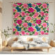 Des fleurs rose vif et bleu riche éclatent sur cette couverture colorée à motifs.