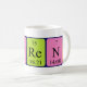 Florent spelled out as Fl O Re N T (Flerovium Oxygen Rhenium Nitrogen Tritium) on a mug for the scientist in you.