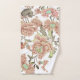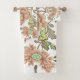Belle serviette sertie avec un joli fond de corail défraîchi avec des flancs bleu rose et le feuillage.