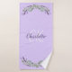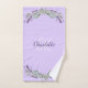 Arrière - plan violet, décoré de fleurs de lavande et de verdure d'eucalyptus. Personnalisez et ajoutez un nom et des initiales monographiques. Le nom est écrit avec un script de style moderne écrit à la main.