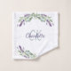 Arrière - plan blanc, décoré de fleurs de lavande et de verdure d'eucalyptus. Personnalisez et ajoutez un nom et des initiales monographiques. Le nom est écrit avec un script de style moderne écrit à la main.