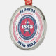 Show your state pride this holiday season with this unique Christmas ornament dedicated to Florida, the 27th state. It has red, white, and blue patriotic colours with a circular typography design on a white background. The text includes facts about the state, such as its name, capital, state abbreviation, region, time zone, geographic coordinates, the year of its statehood, and its resident's name. It's a great gift for those who wish to celebrate their state or for those who are feeling nostalgic about their home state.