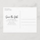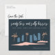 Budget-friendly save the date postcards for your upcoming beach wedding in Miami Beach, Florida (or any other beach town). City with palm trees design that reads "Sandy toes and salty kisses" - customize the front and backside of the postcard with your wedding details.