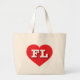 This tote bag features a vibrant red heart containing the bold white upper case letters FL, the official abbreviation for the state of Florida, the sunshine state.