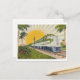 Beautiful artwork on this vintage 1941 Florida tourism postcard showing a Florida Sunbeam train on a track through palm trees with a huge sun in the background.