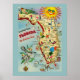 Une carte vintage de la Floride. C'était un grand souvenir il y a des années. La carte illustre les anciennes attractions de l'État, l'oiseau d'État et la fleur d'État. Aujourd'hui, il fait une impression colorée pour encadrer et accrocher. Cette conception a une bordure ajoutée pour garder toute l'image claire quand elle est encadrée. L'impression mesure 16 x 20 et s'intègre dans un cadre standard.