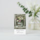 An elegant lush rustic bouquet of pink and cream flowers in a weathered metal can brimming with a delicate bouquet of cream and pink flowers sits at the centre of this design, for a rustic boho-chic vibe. Information and social media on the back of the card. A rustic boho chic style.