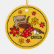 This funny ornament is sure to delight anyone who loves to bake. Featuring a play on words, the text says FLOUR CHILD with flour sack, bowl of batter, oven mitt, eggs, a rolling pin and flowers. Great gift for your favourite baker! Customizable background colour. Also available on T-shirts, apparel, tote bags, mugs, coasters, keepsakes and more! PinkInkArt original!