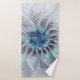 Flourish Abstract Modern Fractal Flower With Blue Bath Towel Set