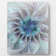 Flourish Abstract Modern Fractal Flower With Blue Plaque