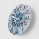 Flourish Abstract Modern Fractal Flower With Blue Round Clock
