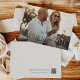 Announce your upcoming wedding with these elegant save the date cards by Redwood and Vine Design Co, featuring a horizontal photo with a white text overlay in classic, oversized serif lettering with script flourish accents. Customize the back with additional text and a custom QR code leading to your wedding website for more information.