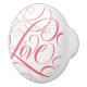Flourished LOVE Calligraphy Script Pink Word Ceram Ceramic Knob