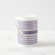 Enjoy a fun zigzag pattern with a pretty flourish as the beige zigzag curves up and down to points in a shape inspired by lotus petals. This flourished zigzag sits on top of a pleasant lilac background for a soothing contrast. Customize the monogram with the appropriate initial for a personalized touch. This mug is available in jumbo, espresso, and bone china sizes and styles.