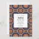 Birthday invitation with a repeating pattern of decorative elements in flower, star and sun shapes.