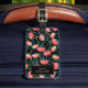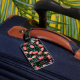 Charming floral luggage tag with a pattern of flowers, berries, and leaves in pink, black, white, and green. Add your name!