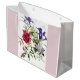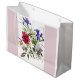 Flowers adorn this lovely gift bag that comes in 3 sizes! Use this gift bag for weddings, birthdays and more. The flowers in the design are purple Iris, pink and white peonies and white roses.