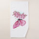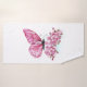 Flower arrangement of pink butterfly with pink Japanese cherry blossoms on white background.