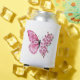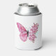 Flower arrangement of pink butterfly with pink Japanese cherry blossoms on white background.