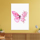 Flower arrangement of pink butterfly with pink Japanese cherry blossoms on white background.