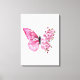 Flower arrangement of pink butterfly with pink Japanese cherry blossoms on white background.
