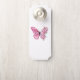 Flower arrangement of pink butterfly with pink Japanese cherry blossoms on white background.