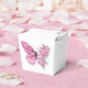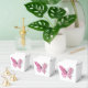 Flower arrangement of pink butterfly with pink Japanese cherry blossoms on white background.