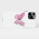 Flower arrangement of pink butterfly with pink Japanese cherry blossoms on white background.