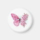 Flower arrangement of pink butterfly with pink Japanese cherry blossoms on white background.