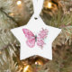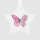 Flower arrangement of pink butterfly with pink Japanese cherry blossoms on white background.