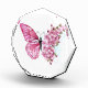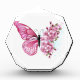 Flower arrangement of pink butterfly with pink Japanese cherry blossoms on white background.
