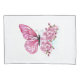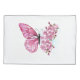 Flower arrangement of pink butterfly with pink Japanese cherry blossoms on white background.