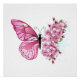 Flower arrangement of pink butterfly with pink Japanese cherry blossoms on white background.