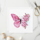 Flower arrangement of pink butterfly with pink Japanese cherry blossoms on white background.