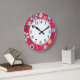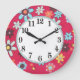 10.75” round acrylic wall clock with a vintage 1960s image of whimsical yellow, blue, orange and purple flowers on red. The white circle has an easy-to-read clock face and an aqua border. See the entire Psychedelic 60s Clock collection in the DECOR | Clocks section.
