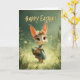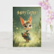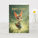 This adorable Easter card features a baby bunny wearing a floral crown and a sweet patterned dress, standing in a glowing spring meadow with butterflies fluttering nearby. Holding a basket of colorful Easter eggs, she brings pure seasonal charm and warmth. Perfect for kids and bunny lovers alike, this design adds a whimsical, storybook touch to any Easter celebration. Printed on premium cardstock for a beautiful holiday keepsake.