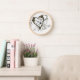Flower Design Wall Clock, 10" Round Wood Frame Clock