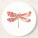 Artistically drawn, gold, jewelled dragonfly with red and wings decorated with red, blooming, jewelled Japanese cherry on white background. Gold Dragonfly.