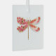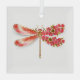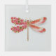 Artistically drawn, gold, jewelled dragonfly with red and wings decorated with red, blooming, jewelled Japanese cherry on white background. Gold Dragonfly.