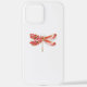 Artistically drawn, gold, jewelled dragonfly with red and wings decorated with red, blooming, jewelled Japanese cherry on white background. Gold Dragonfly.