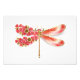 Artistically drawn, gold, jewelled dragonfly with red and wings decorated with red, blooming, jewelled Japanese cherry on white background. Gold Dragonfly.