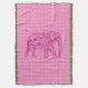Mixed media digital graphic of an elephant against an arabesque tiled background - shades of pink from pale pink to deep fuchsia