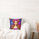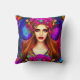 This is a beautiful throw pillow featuring a flower fairy queen in vibrant colour of pinks, purples and blues.