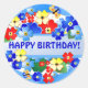Bright, pretty happy birthday sticker, very colorful, accurate printing, adds pizzazz to a birthday card. Printing is neat and accurate.