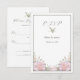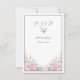 An Elegant Pink Roses Garden Wedding RSVP Card designed with soft pink rose buds, and green floral accents. The front cover text includes: The Bride and Groom's Names and Wedding Date. The Reverse text includes: Your Reply--Date, along with space for guests to insert their names. To personalize, simply insert your text into our easy template, replacing the sample text.