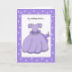 This cute will you be my flower girl card features a lavender or purple flower girl dress as the focal point with the words "My wedding dreams..." written above the dress. The dress is surrounded by a complimentary purple background with white polka dots. A very cute will you be my flower girl card. Copyright Kathy Henis