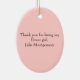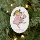 Adorable way to say thank you, to your flower girl, with this oval ceramic shaped ornament. Country primitive artwork of a little girl holding a big pink tulip. Personalize by adding your flower girl's name at the bottom, and a thank you message on the backside. A gift she will cherish for years to come.