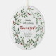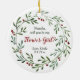 Flower Girl Personalized Proposal Greenery Wreath Ceramic Ornament. Personalize with your custom information on both front and back.